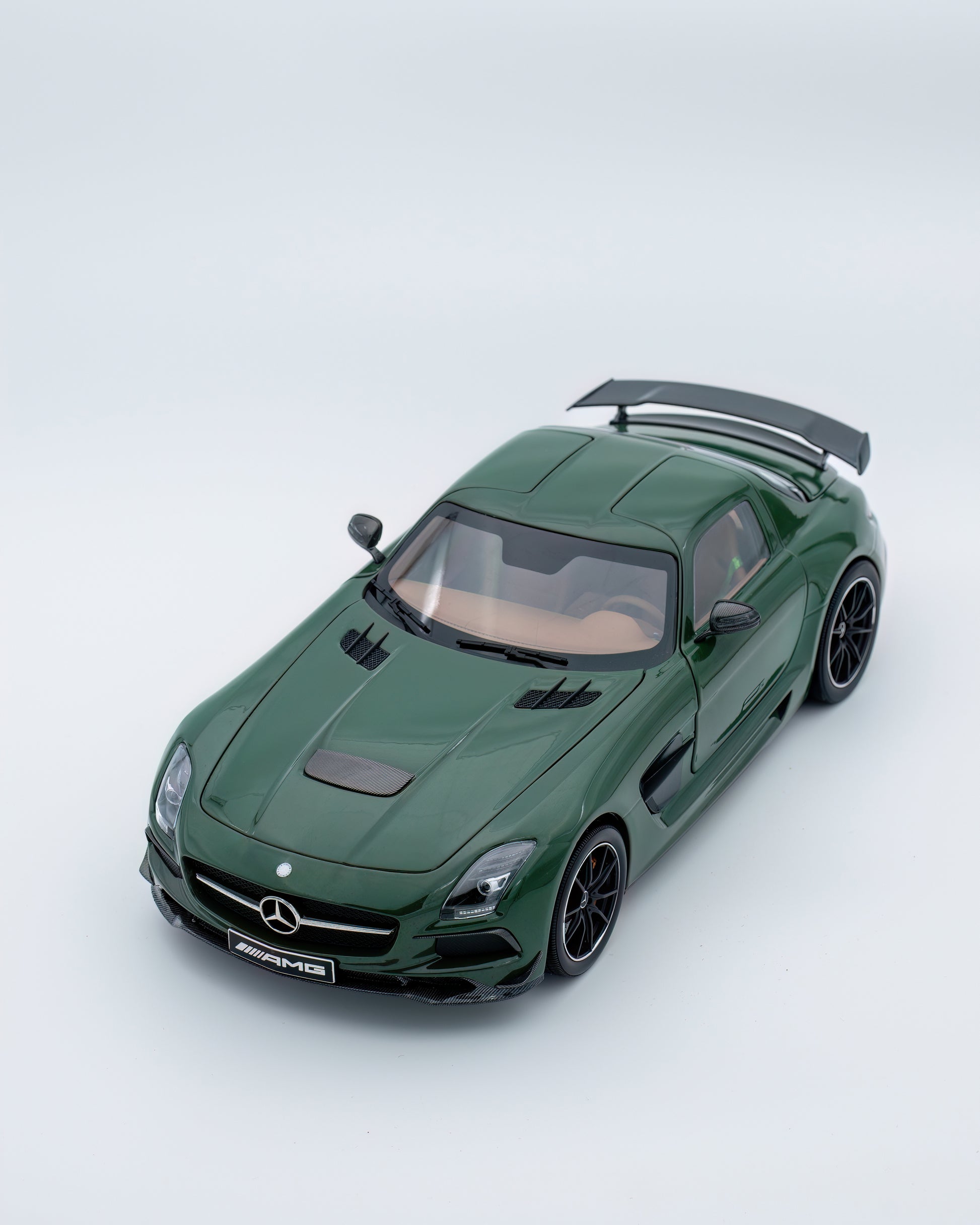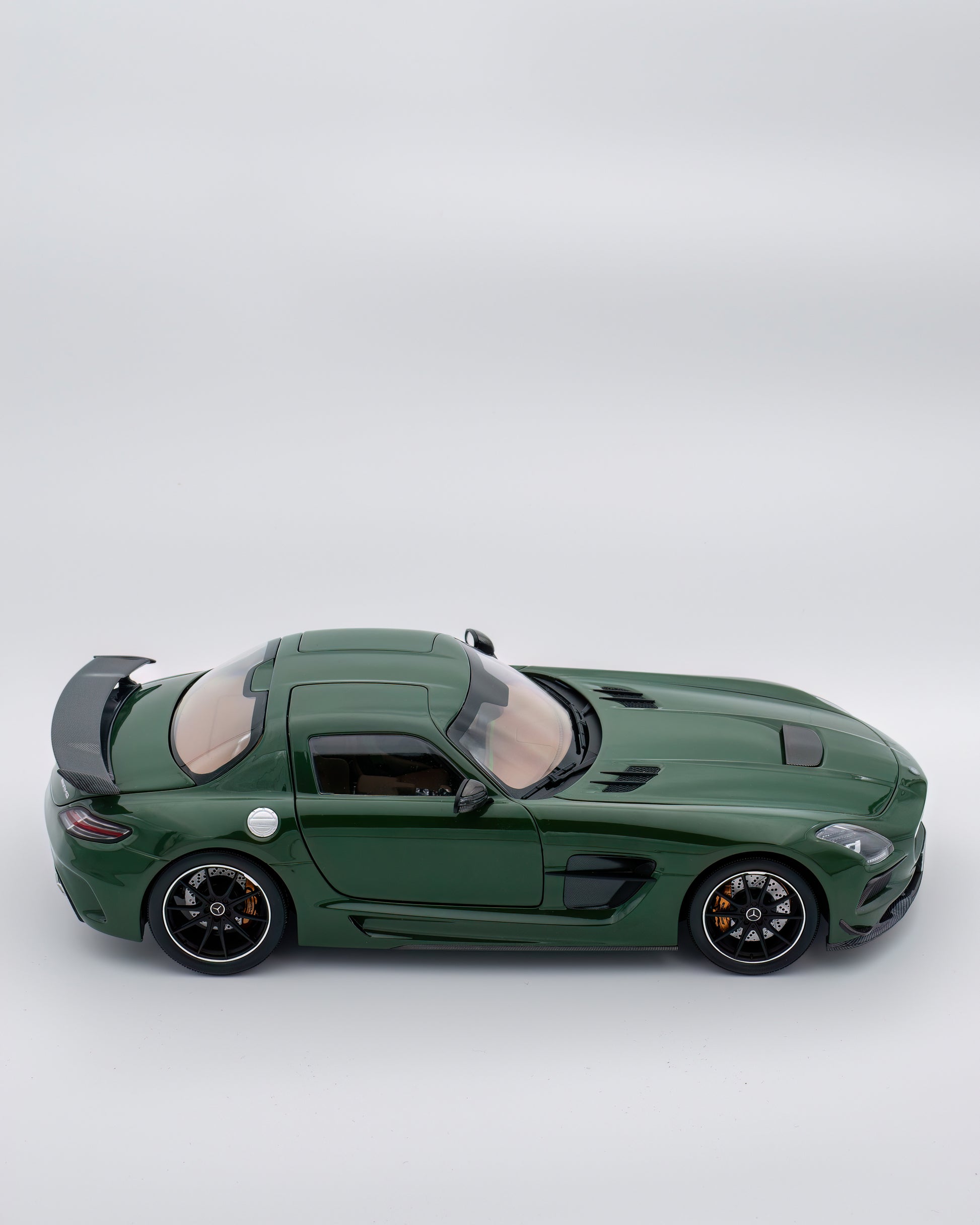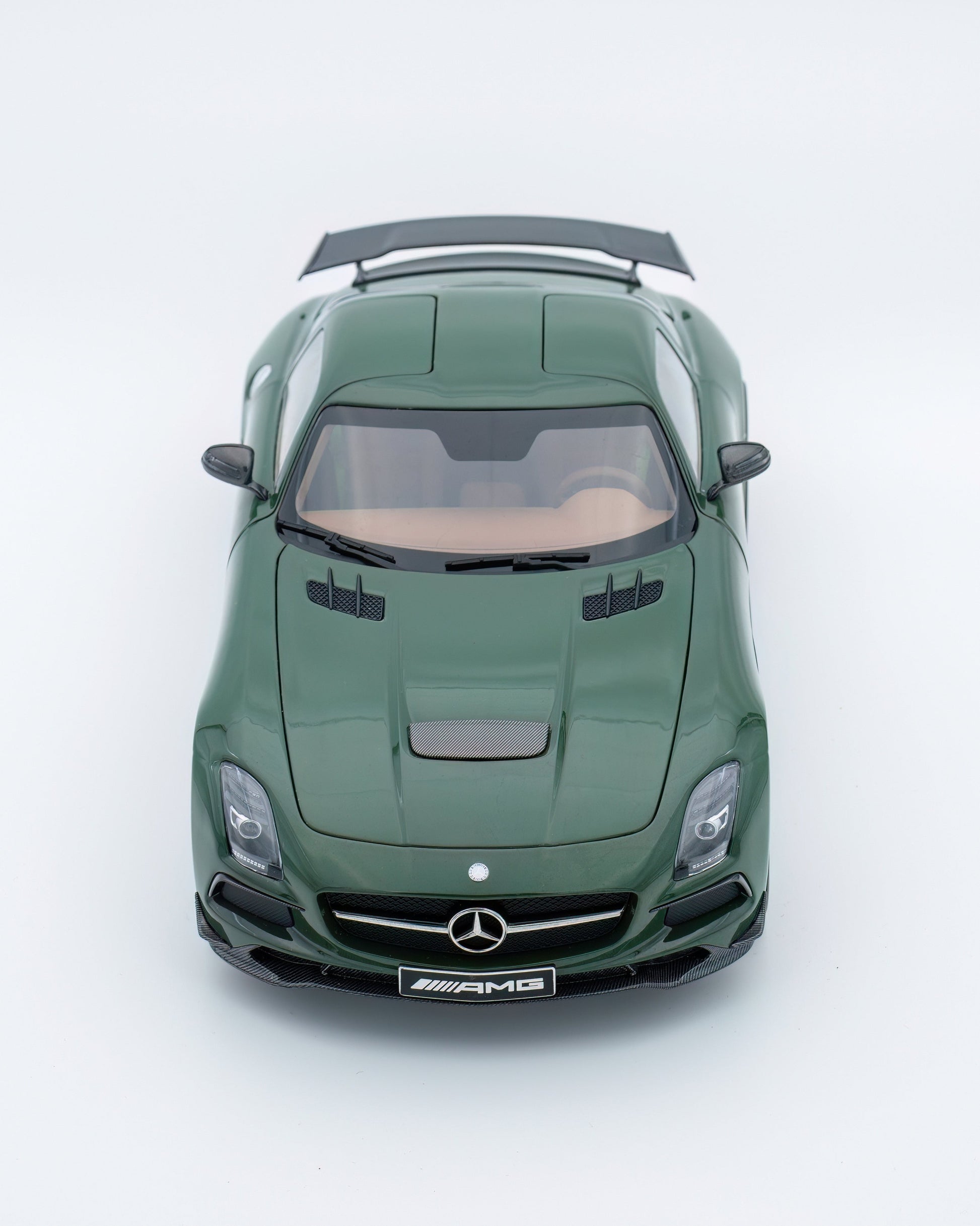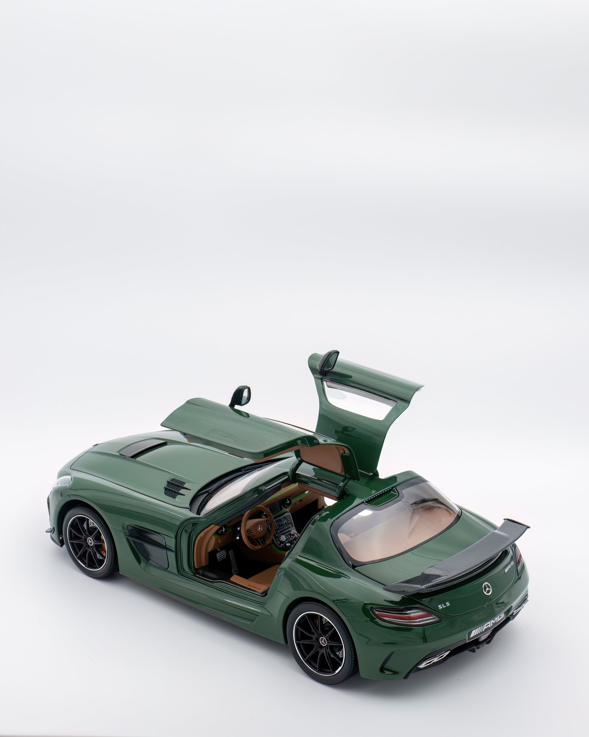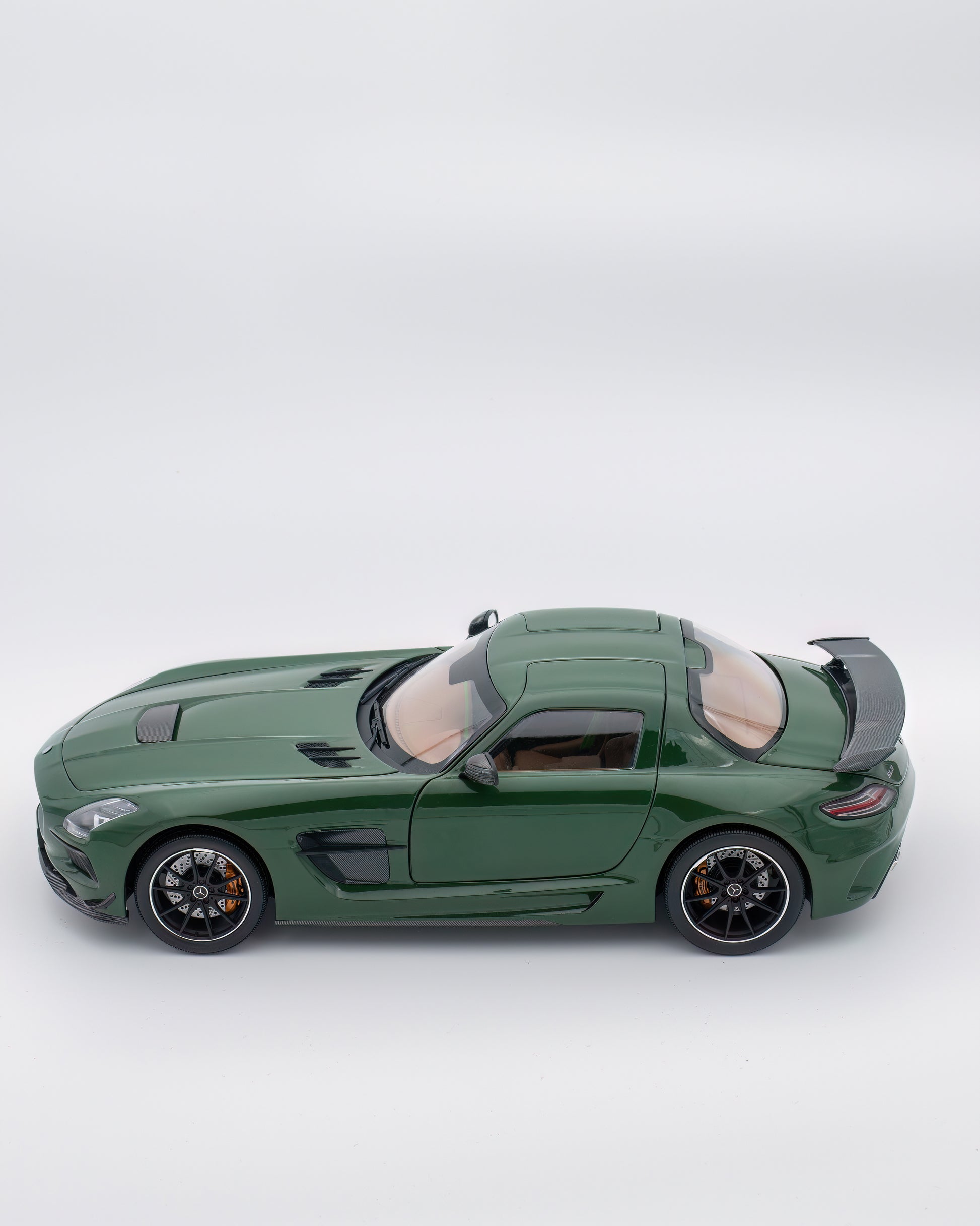 Produced by Minichamps, this 1/18 replica of the rare Mercedes SLS Black Series in Irish Green is a must-have for any serious die-cast modelcar collector.