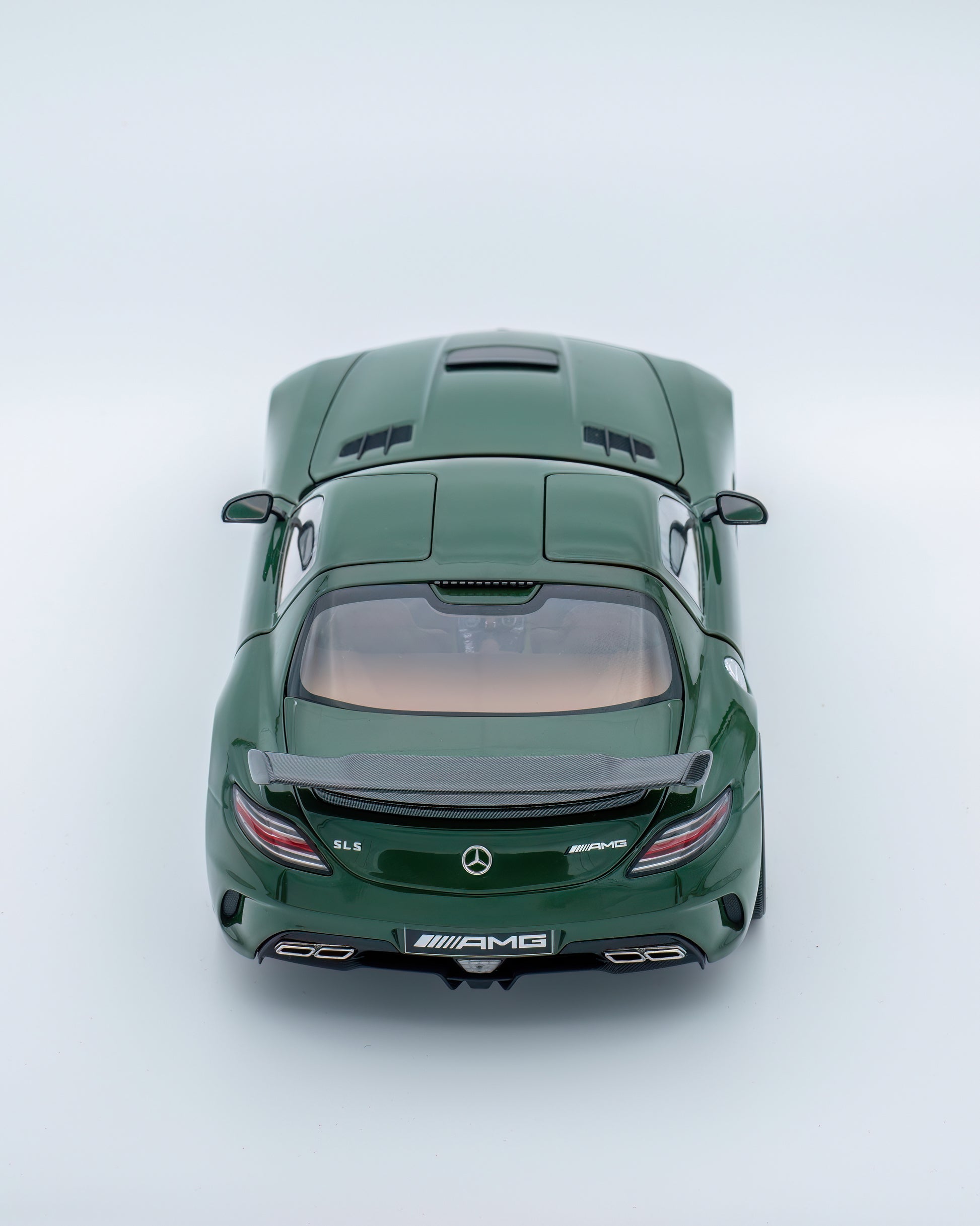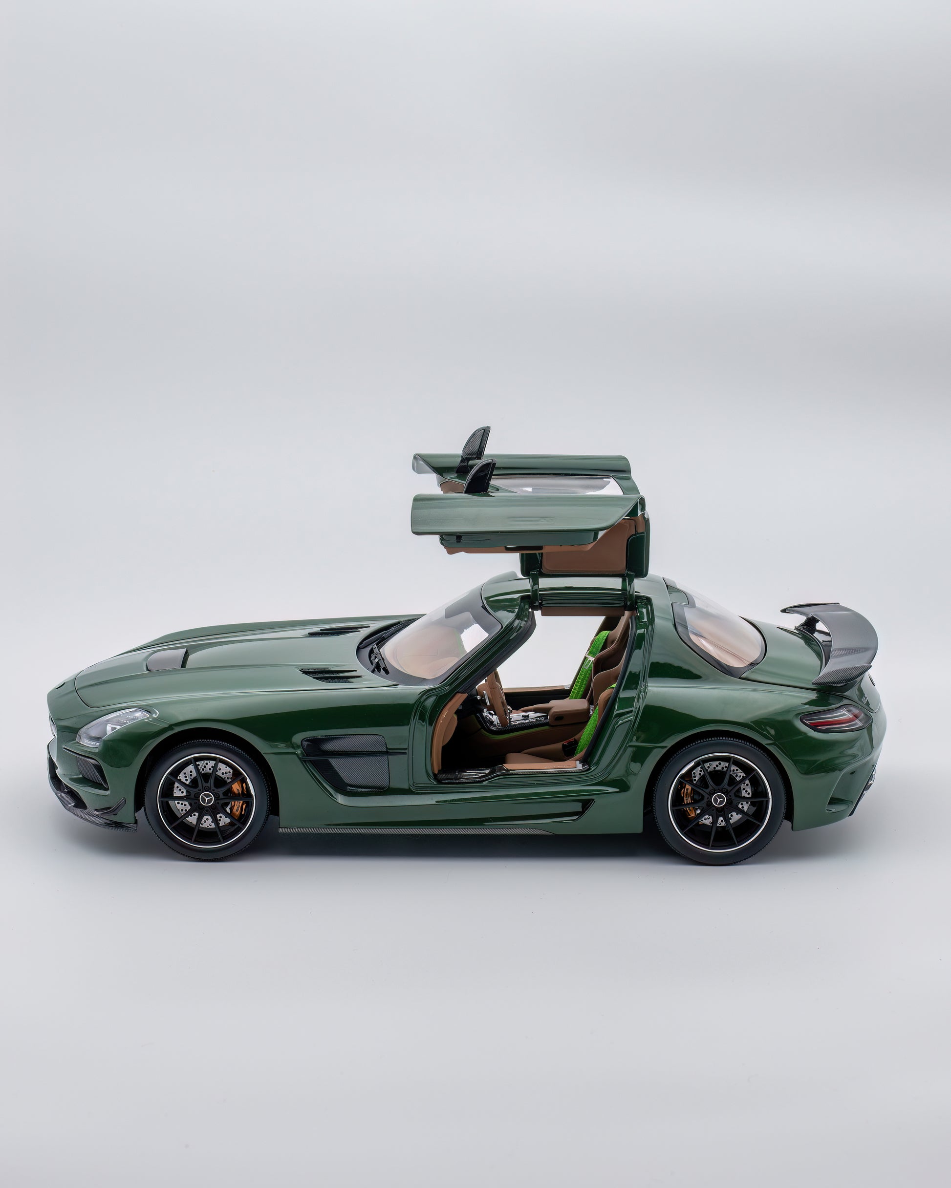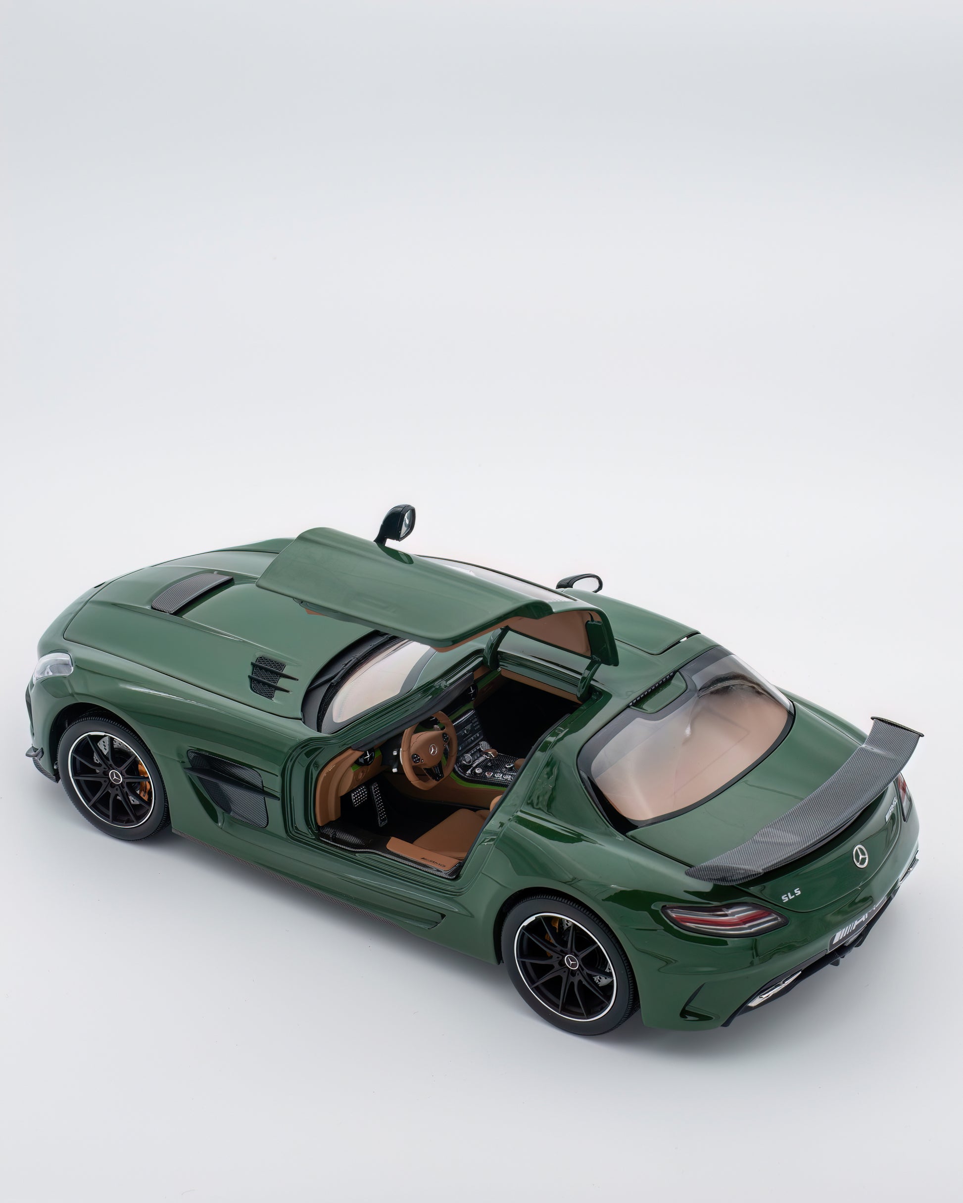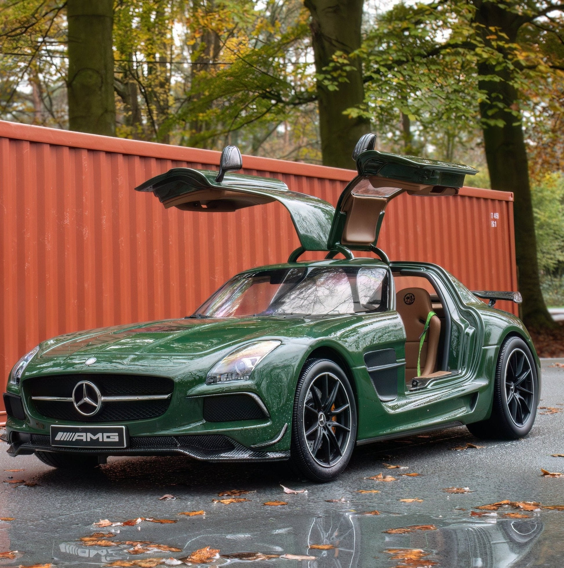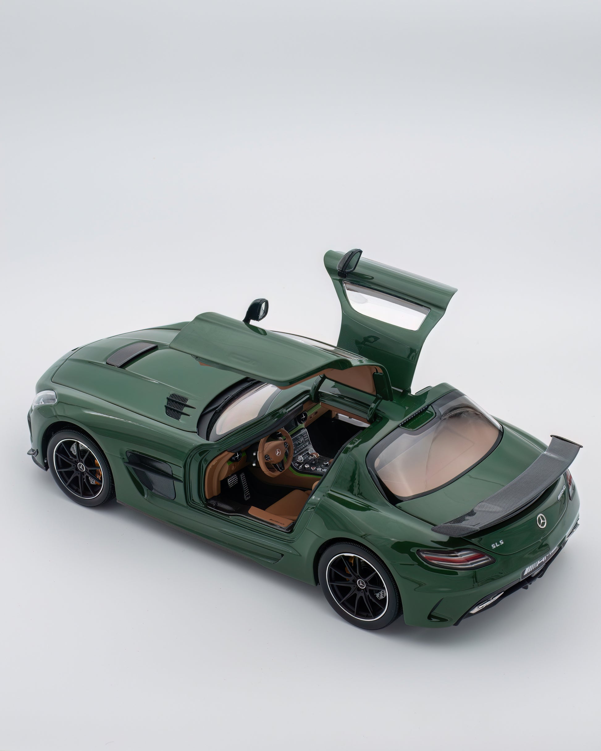Produced by Minichamps, this 1/18 replica of the rare Mercedes SLS Black Series in Irish Green is a must-have for any serious die-cast modelcar collector.