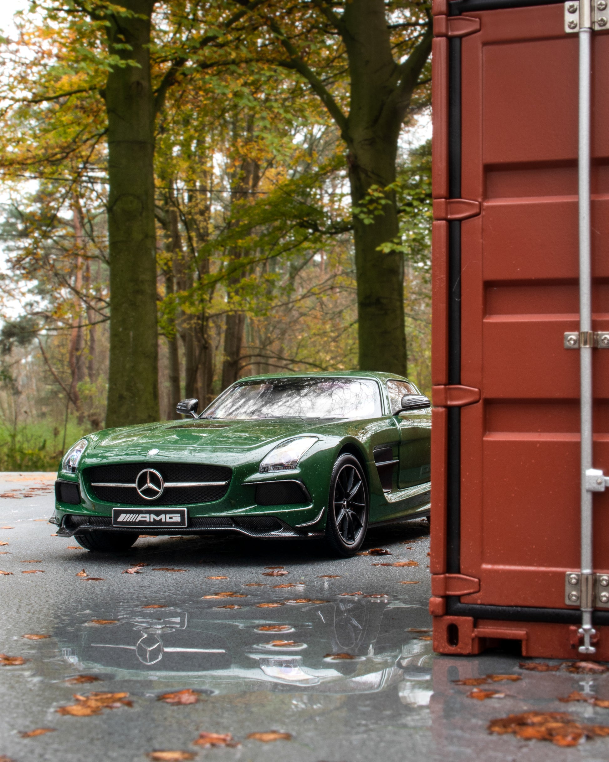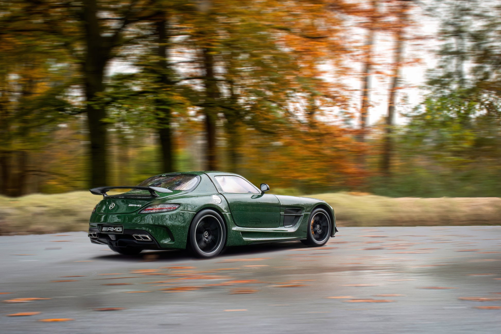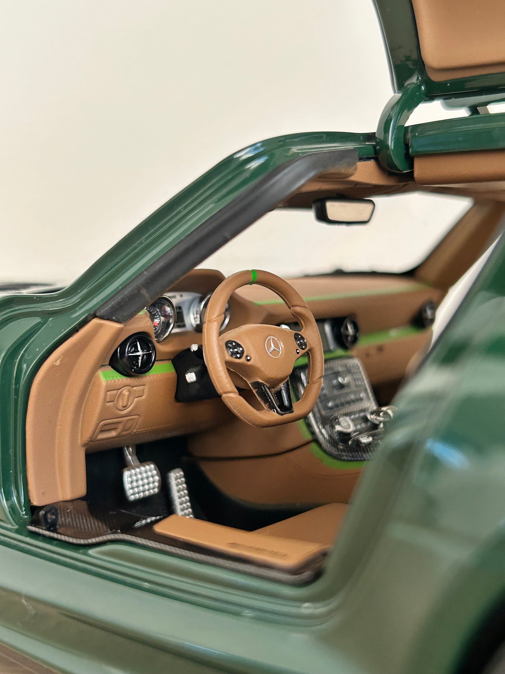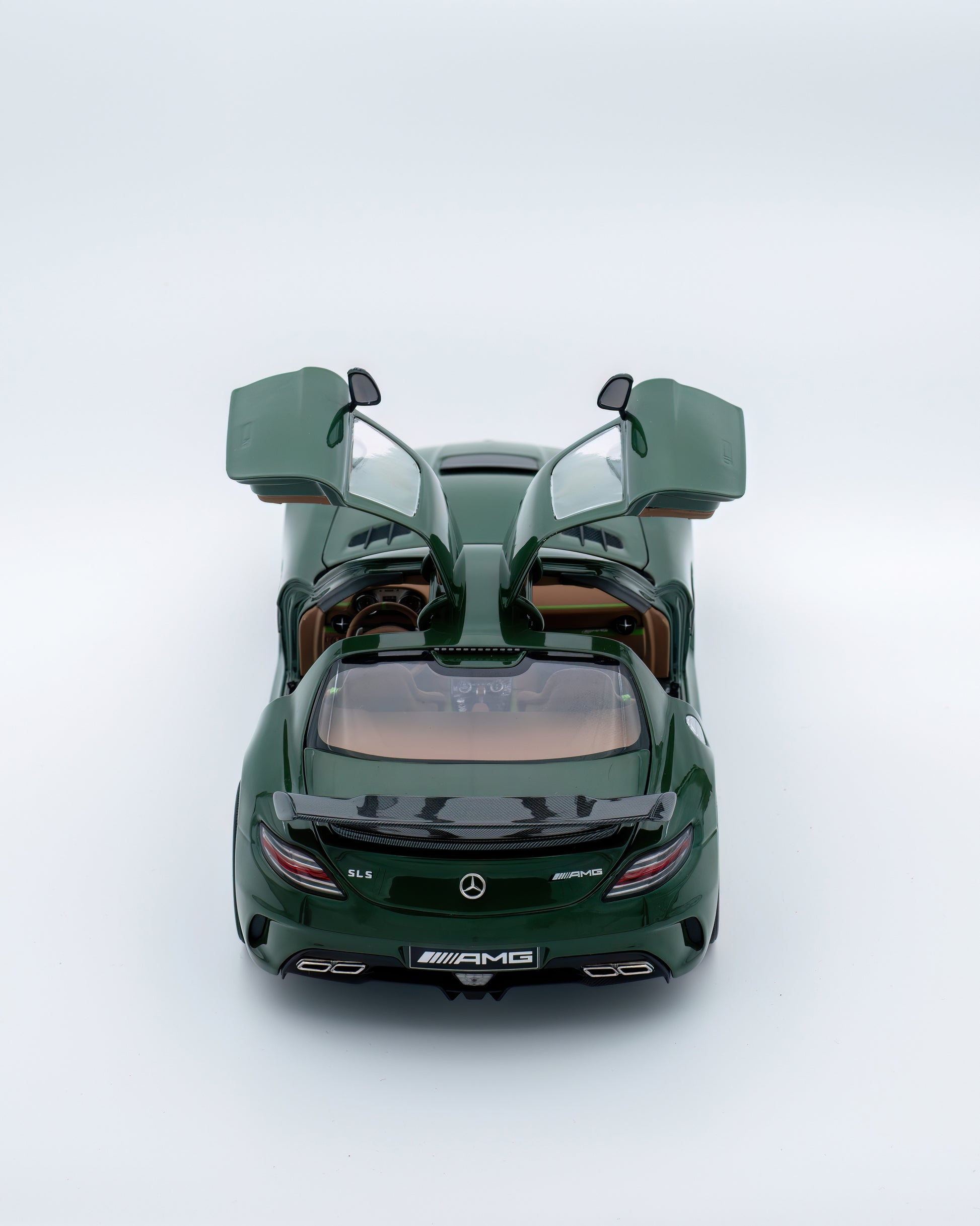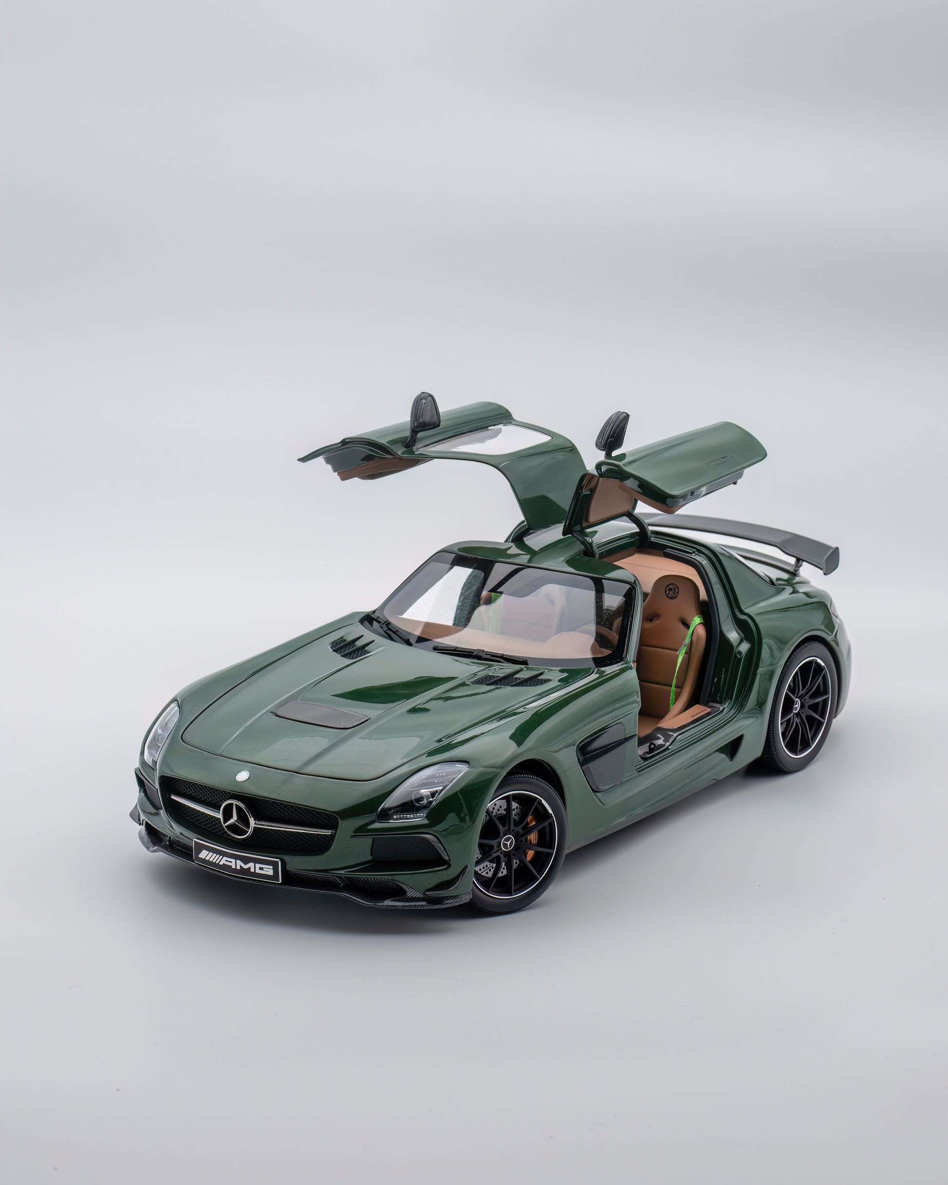 Produced by Minichamps, this 1/18 replica of the rare Mercedes SLS Black Series in Irish Green is a must-have for any serious die-cast modelcar collector.